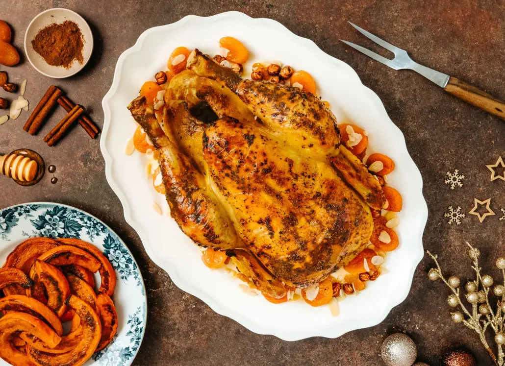 - Saler et poivrer l’intérieur du chapon, puis le garnir avec la farce. Refermer l’ouverture avec des cure-dents ou de la ficelle de cuisine.