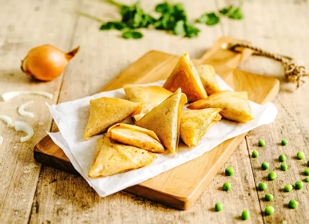Un triangle croustillant au cœur épicé.
