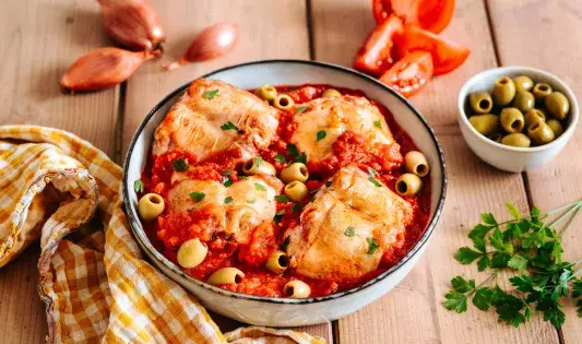 Râbles de lapin au piment d’Espelette, tomates et olives