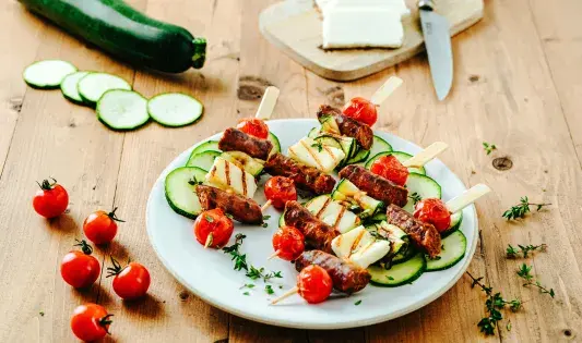 Brochettes de merguez et halloumi